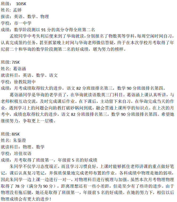華詢教育階段成績展--月考+階段測+期中(寶鼎篇)
